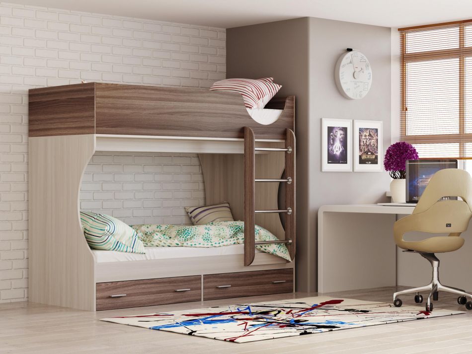 Кровать двухъярусная Олмеко Д2 Ясень шимо светлый Ясень шимо темный - это качественное изделие производства Олмеко, соответствующее современному государственному стандарту.