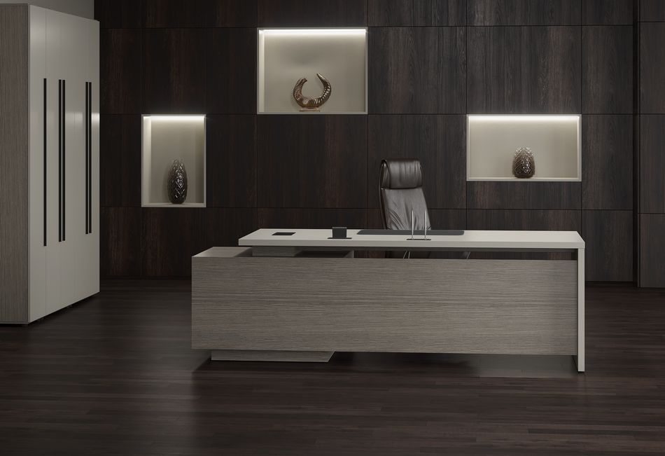 VELION это не просто мебель для кабинета. Это воплощение современного дизайна, премиального качества и технологичности. Коллекция создана для тех, кто ценит исключительность и стремится окружить себя эстетикой и комфортом. Она подойдет как ценителям сдержанной элегантности, так и тем, кто хочет создать яркое, запоминающееся пространство. Благодаря уникальным сочетаниям декоров можно добиться кардинально разных концепций от строгих до роскошных. Помимо эстетики, декоры VELLION отличаются технологичностью. В коллекции использованы покрытия EGGER с технологией синхронной поры, которые делают декоры неотличимыми от натуральных материалов. Дуб Сильвер выглядит как настоящий шпон, а Кобрапереливается, как бронзовый металл. В основе коллекции VELION декоры лучших международных брендов, которые отличаются высочайшим качеством и долговечностью. Из тысяч возможных сочетаний были выбраны именно те, которые отражают многогранный характер мебели VELION и выражают новый взгляд на привычные вещи. EGGER основной декор в коллекции VELION, из него выполнены корпусы изделий. Мебель в декоре Кобра дополняется металлической фурнитурой бронзового цвета. Мебель в декоре Дуб Сильвер дополнена матовой черной фурнитурой. KASTAMONU EVOSOFT декор столешниц и фасадов. Премиальное покрытие EVOSOFT обладает уникальными свойствами. Это матовая и бархатистая на ощупь поверхность, к которой приятно прикасаться. При этом, она удивительно практична обеспечивает защиту от следов пальцев, чистящих абразивов, ультрафиолета и химических веществ. Удобные места для хранения, ящики с плавным ходом и доводчиками, встроенный розеточный блок с беспроводной зарядкой и USB в каждом столе. Общие характеристики основной материал МДФ с покрытием EVOSOFT, ЛДСП EGGER столешницы МДФ 36 мм опоры столов МДФ 36 мм тумбы-опоры ЛДСП 18 мм, фасады МДФ 18 мм каркасы шкафов и тумб ЛДСП 18 мм, задняя стенка ЛДСП высота шкафов 2200 мм дверцы шкафов МДФ 18 мм / стекло в раме в цвет основного металла. Двери шкафов комплектуются петлями с доводчиком бесшумное скольжение слайд-дверей лицевая фурнитура металлические ручки 220 мм, 350 мм, 1200 мм подсветка LED-лента розеточный блок беспроводная зарядка, розетка 220В, USB направляющие телескопические шариковые плавного хода с доводчиками.Условия покупки