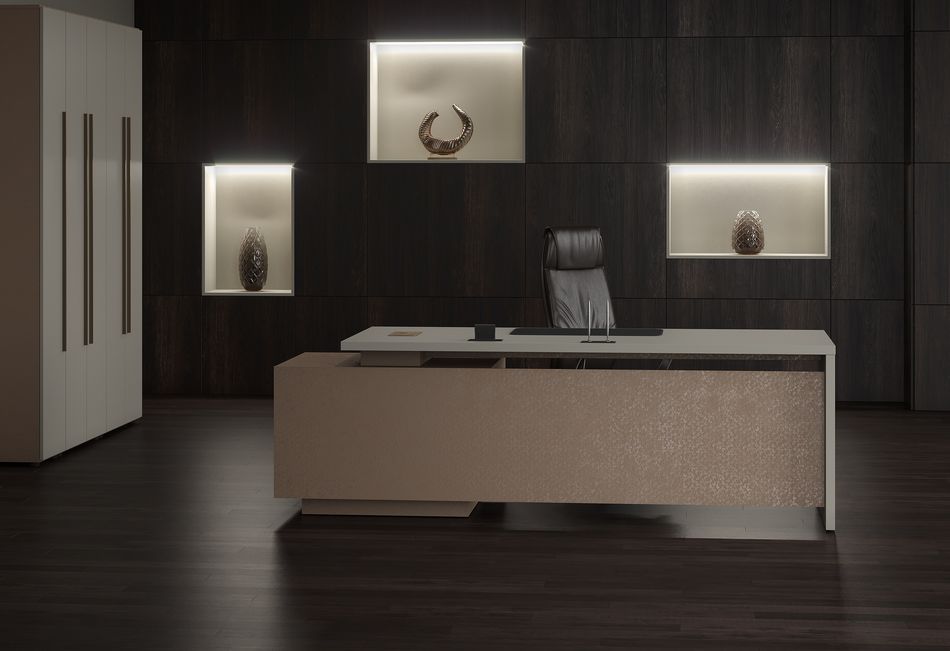 VELION это не просто мебель для кабинета. Это воплощение современного дизайна, премиального качества и технологичности. Коллекция создана для тех, кто ценит исключительность и стремится окружить себя эстетикой и комфортом. Она подойдет как ценителям сдержанной элегантности, так и тем, кто хочет создать яркое, запоминающееся пространство. Благодаря уникальным сочетаниям декоров можно добиться кардинально разных концепций от строгих до роскошных. Помимо эстетики, декоры VELLION отличаются технологичностью. В коллекции использованы покрытия EGGER с технологией синхронной поры, которые делают декоры неотличимыми от натуральных материалов. Дуб Сильвер выглядит как настоящий шпон, а Кобрапереливается, как бронзовый металл. В основе коллекции VELION декоры лучших международных брендов, которые отличаются высочайшим качеством и долговечностью. Из тысяч возможных сочетаний были выбраны именно те, которые отражают многогранный характер мебели VELION и выражают новый взгляд на привычные вещи. EGGER основной декор в коллекции VELION, из него выполнены корпусы изделий. Мебель в декоре Кобра дополняется металлической фурнитурой бронзового цвета. Мебель в декоре Дуб Сильвер дополнена матовой черной фурнитурой. KASTAMONU EVOSOFT декор столешниц и фасадов. Премиальное покрытие EVOSOFT обладает уникальными свойствами. Это матовая и бархатистая на ощупь поверхность, к которой приятно прикасаться. При этом, она удивительно практична обеспечивает защиту от следов пальцев, чистящих абразивов, ультрафиолета и химических веществ. Удобные места для хранения, ящики с плавным ходом и доводчиками, встроенный розеточный блок с беспроводной зарядкой и USB в каждом столе. Общие характеристики основной материал МДФ с покрытием EVOSOFT, ЛДСП EGGER столешницы МДФ 36 мм опоры столов МДФ 36 мм тумбы-опоры ЛДСП 18 мм, фасады МДФ 18 мм каркасы шкафов и тумб ЛДСП 18 мм, задняя стенка ЛДСП высота шкафов 2200 мм дверцы шкафов МДФ 18 мм / стекло в раме в цвет основного металла. Двери шкафов комплектуются петлями с доводчиком бесшумное скольжение слайд-дверей лицевая фурнитура металлические ручки 220 мм, 350 мм, 1200 мм подсветка LED-лента розеточный блок беспроводная зарядка, розетка 220В, USB направляющие телескопические шариковые плавного хода с доводчиками.Условия покупки