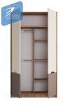 Корпус шкафа ЛДСП 16мм в кромке 2,0 по видимой стороне в цвет корпуса, кромка скрытых частей изделия 0,4 мм, задние стенки ЛХДФ 3,2 мм. Внутри изделия, по центру, расположена перегородка, справа три полки, слева две штанги овальные металлические под одежду. В верхней части шкафа ниша высотой 320 мм. Расстояние между нижней вязкой и полкой и верхней вязкой и полкой 300мм, расстояние между средними полками два проема по 460 мм. Ниша со штангами высотой 1568 мм.