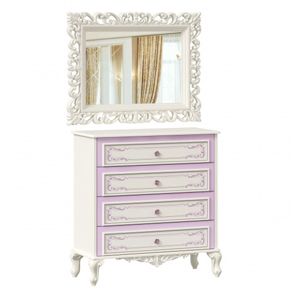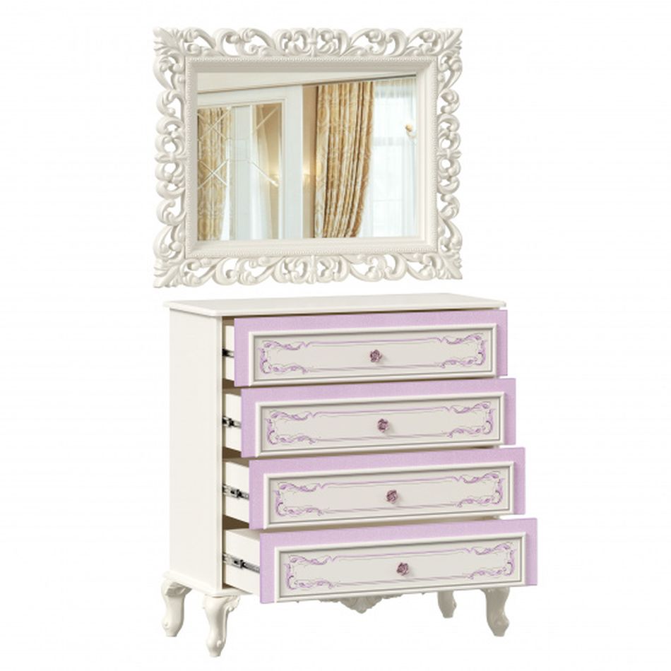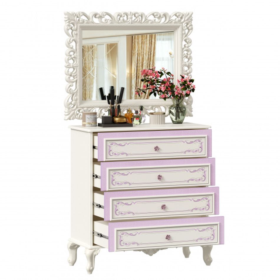 Комод с 4 ящиками и зеркалом Любимый дом Маркиза 01 Алебастр