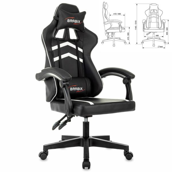 Кресло компьютерное BRABIX BRABIX Shooter GM-123, 2 подушки, экокожа, черное/белое