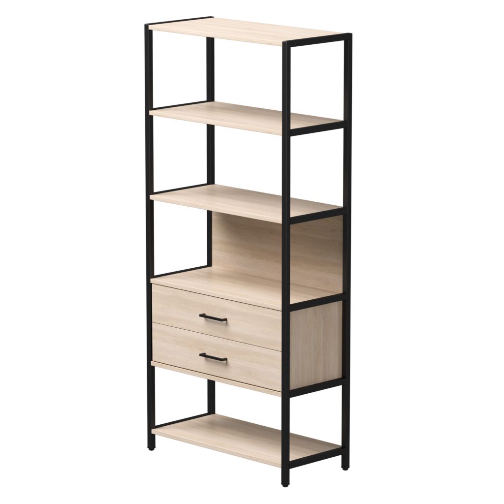 Серия мебели EVERPROF EVO воплощает идеальный баланс современного дизайна и функциональности. Минималистичный стиль, чистые линии и внимание к деталям делают её отличным выбором для офисов и домашних кабинетов. В производстве используются высококачественные материалы, придающие мебели элегантность и обеспечивающие долговечность. Металлические элементы создают гармоничное сочетание прочности и эстетики. Стеллаж металлический Everprof EVO станет отличным решением для хранения в вашем доме или офисе. Эта модель сочетает современный дизайн с высоким уровнем надежности и функциональности. Каркас из металла обеспечивает устойчивость и прочность всей конструкции, а полки из ЛДСП отличаются износостойкостью и легкостью в уходе. Текстура дерева придает стеллажу благородный и теплый внешний вид, гармонично вписываясь в любые интерьеры. Стеллаж позволяет удобно разместить книги, папки, документы, декор или другие вещи, которые нуждаются в надежной и аккуратной системе хранения. Эстетика черного металлического каркаса в сочетании с древесным оттенком идеально подойдет как для офисного стиля, так и для уютных домашних помещений. Этот стеллаж не только практичен, но и добавляет стильный акцент в интерьер. Состав набора Комплектация Количество Комплект стенок вертикальных Everprof EVO 830х385х1840 1 Комплект полок стеллажа 3 штуки Everprof EVO 780х382х738 2 Комплект задних стенок стеллажа Everprof EVO 780х18х342 1 Комплект элементов стеллажа Модуль с ящиками Everprof EVO 776х362х342 1Условия покупки