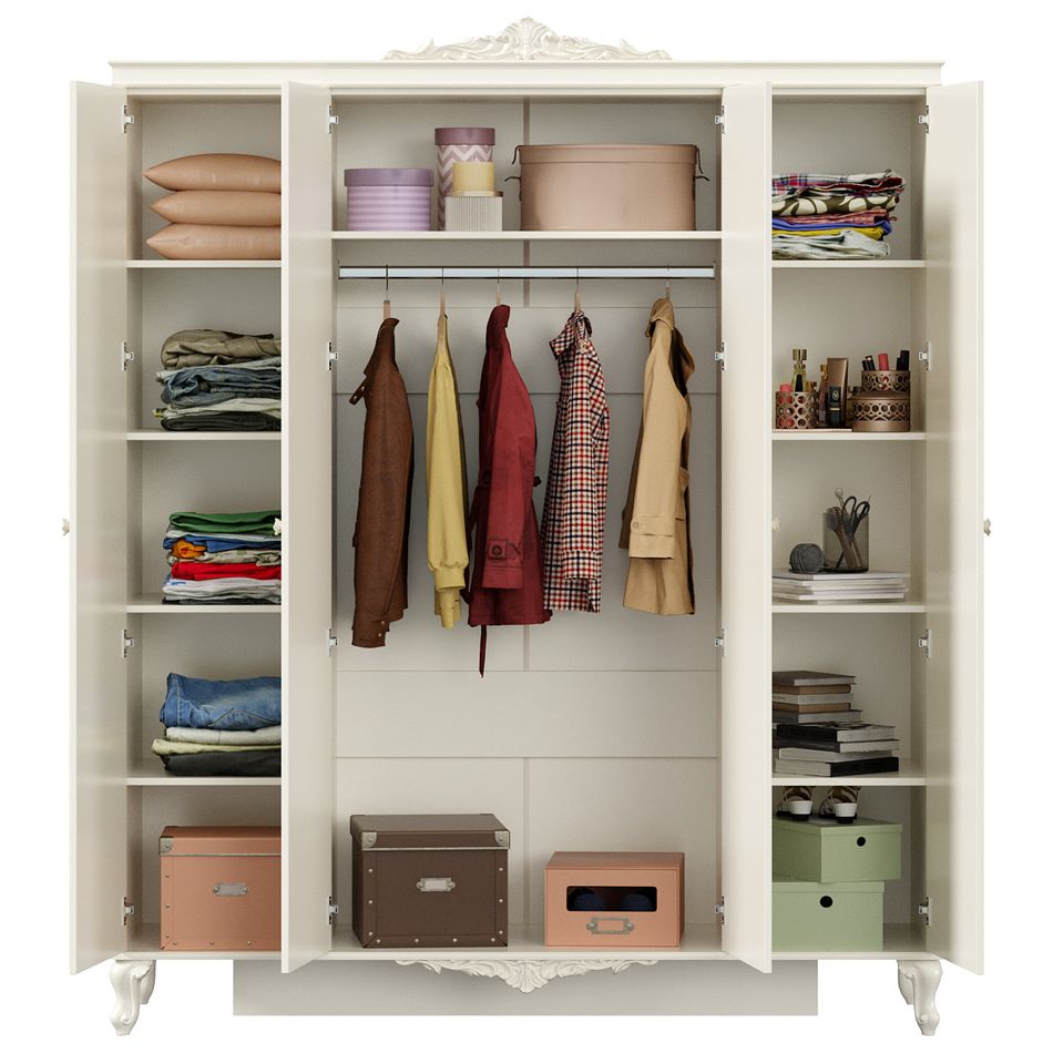 Гардеробные шкафы для одежды также можно сравнить между собой в нашем шоу-руме и купить Шкаф четырехстворчатый с 2 зеркалами Любимый дом Луиза ЛД 665.111.000 Алебастр, самостоятельно забрав его с нашего центрального склада в г. Екатеринбург. Полный список адресов и магазинов смотрите на странице контактов.