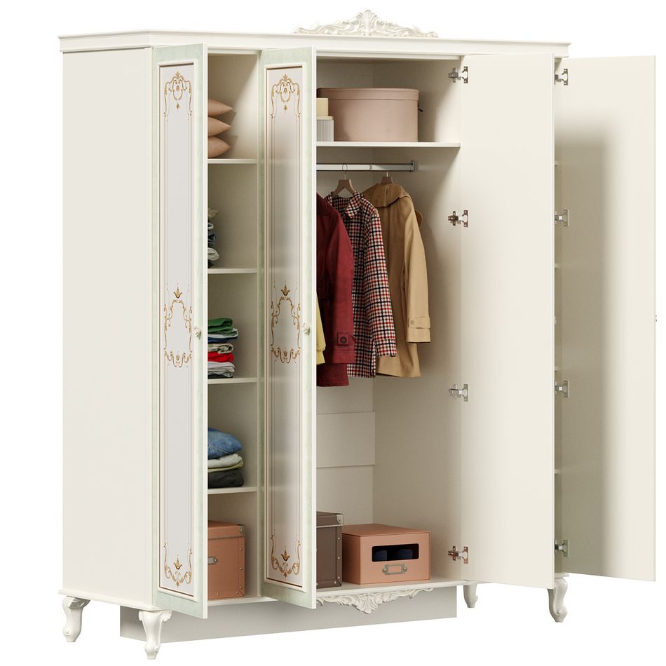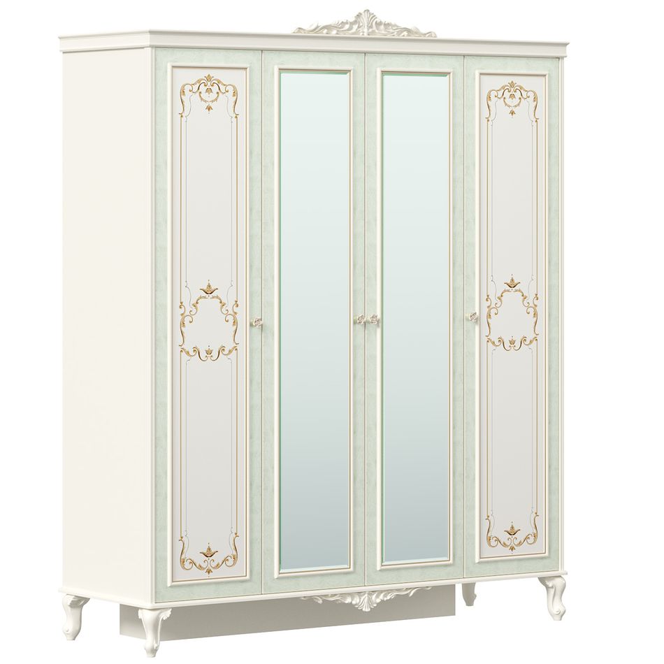 Шкаф четырехстворчатый с 2 зеркалами Любимый дом Луиза ЛД 665.111.000 Алебастр