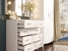 - Девичий дизайн мебели подчеркивают фигурный нижний горизонт в сочетании с изящными невысокими ножками и округлые профили по бокам каждого модуля.