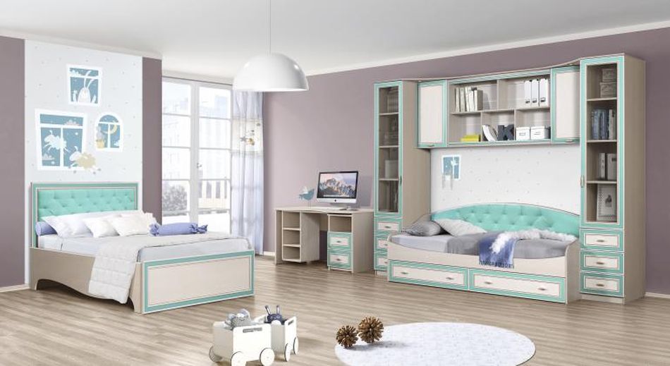 Комплект мебели для детской Олмеко Миндаль 03 Вудлайн кремовый Аруша венге Кожа мята