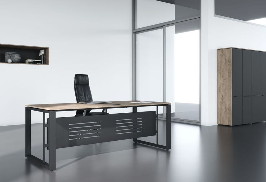Кабинет ENIO это дизайн, вдохновленный итальянскими трендами и адаптированный под российские стандарты. Он воплощает в себе современные идеи открытости и легкости, но при этом учитывает потребности и предпочтения российских руководителей. Серию отличает выразительный контраст деталей массивность металлических опор дополнена парящими деревянными столешницами и фронтальными панелями. А строгость и лаконичность крупных деталей антрацитового цвета разбавлена богатством древесного декора. Именно эта тонкая игра нюансов делает кабинет ENIO таким особенным. Опоры столов O-образной формы с сечением трубы 70х30 мм популярное решение в современной офисной мебели. В ENIO опоры дополнены тонкими линиями ассиметрично расположенных траверс, что делает дизайн этого кабинета привлекательным для широкой публики, но при этом абсолютно незаурядным. Характеристики благородный оттенок пепельно-коричневой древесины с мягкой ажурной текстурой дерева глубокий темно-серый цвет антрацитового угля два варианта материала фронтальной панели металл перфорированный, толщина 1,5 мм, цвет Антрацит, ЛДСП 18 мм в цвет столешницы два варианта высоты фронтальной панели из ЛДСП высокая H646 мм и узкая h400 мм основной материал ЛДСП класс Е1, 18 мм защита торцов изделий из ЛДСП кромка ПВХ 2 мм 0,45 мм корпус шкафов и тумб опоры столов О-образной формы из профиля трубы 70х30 мм, толщина металла 1,5 мм, цвет Антрацит, регулировка по высоте. Две траверсы металлические из профиля трубы 40х25 мм, толщина металла 2 мм упаковка пятислойный гофрокартон, пенопласт лицевая фурнитура металлические ручки черного цвета, кабель-менеджмент гарантийный срок 3 года.Условия покупки