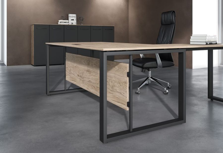 Кабинет ENIO это дизайн, вдохновленный итальянскими трендами и адаптированный под российские стандарты. Он воплощает в себе современные идеи открытости и легкости, но при этом учитывает потребности и предпочтения российских руководителей. Серию отличает выразительный контраст деталей массивность металлических опор дополнена парящими деревянными столешницами и фронтальными панелями. А строгость и лаконичность крупных деталей антрацитового цвета разбавлена богатством древесного декора. Именно эта тонкая игра нюансов делает кабинет ENIO таким особенным. Опоры столов O-образной формы с сечением трубы 70х30 мм популярное решение в современной офисной мебели. В ENIO опоры дополнены тонкими линиями ассиметрично расположенных траверс, что делает дизайн этого кабинета привлекательным для широкой публики, но при этом абсолютно незаурядным. Характеристики благородный оттенок пепельно-коричневой древесины с мягкой ажурной текстурой дерева глубокий темно-серый цвет антрацитового угля два варианта материала фронтальной панели металл перфорированный, толщина 1,5 мм, цвет Антрацит, ЛДСП 18 мм в цвет столешницы два варианта высоты фронтальной панели из ЛДСП высокая H646 мм и узкая h400 мм основной материал ЛДСП класс Е1, 18 мм защита торцов изделий из ЛДСП кромка ПВХ 2 мм 0,45 мм корпус шкафов и тумб опоры столов О-образной формы из профиля трубы 70х30 мм, толщина металла 1,5 мм, цвет Антрацит, регулировка по высоте. Две траверсы металлические из профиля трубы 40х25 мм, толщина металла 2 мм упаковка пятислойный гофрокартон, пенопласт лицевая фурнитура металлические ручки черного цвета, кабель-менеджмент гарантийный срок 3 года.Условия покупки