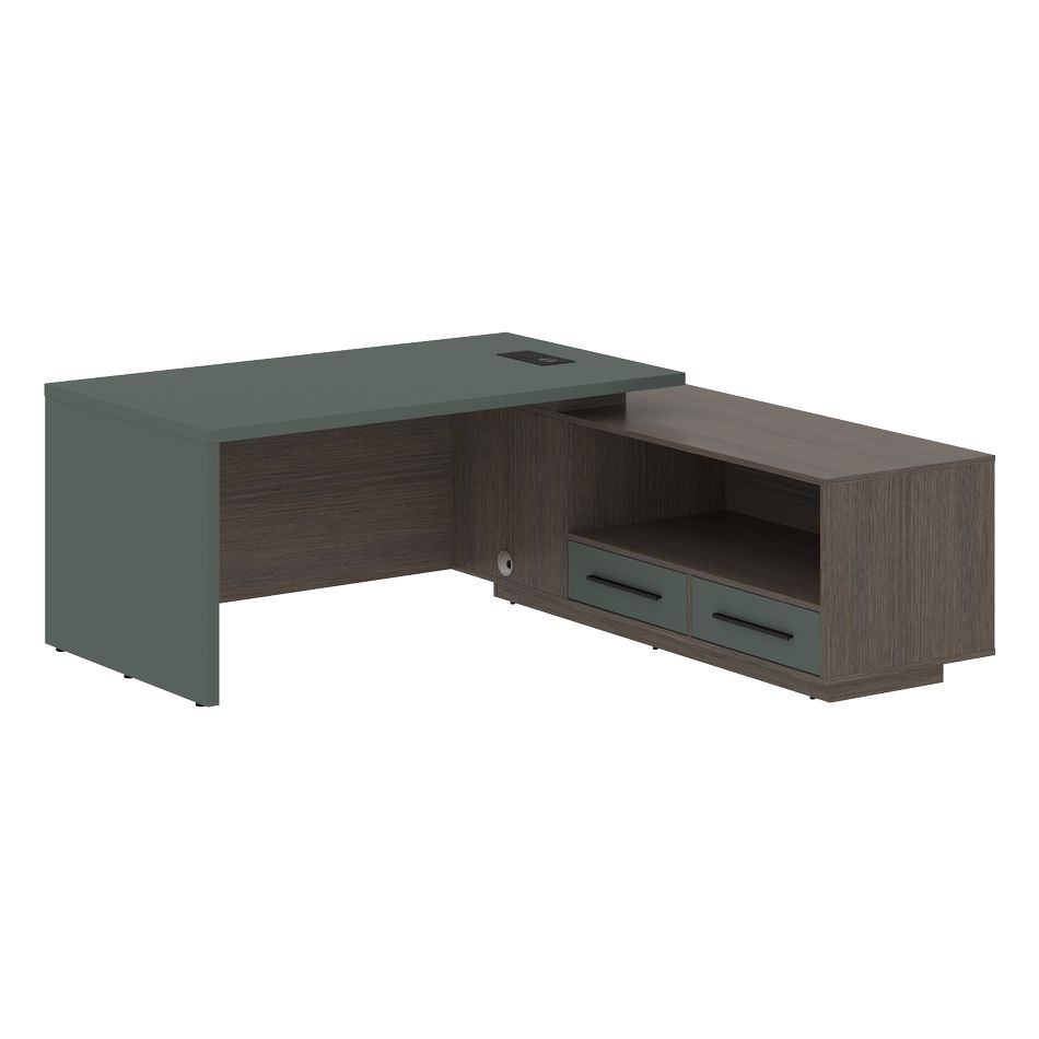 VELION это не просто мебель для кабинета. Это воплощение современного дизайна, премиального качества и технологичности. Коллекция создана для тех, кто ценит исключительность и стремится окружить себя эстетикой и комфортом. Она подойдет как ценителям сдержанной элегантности, так и тем, кто хочет создать яркое, запоминающееся пространство. Благодаря уникальным сочетаниям декоров можно добиться кардинально разных концепций от строгих до роскошных. Помимо эстетики, декоры VELLION отличаются технологичностью. В коллекции использованы покрытия EGGER с технологией синхронной поры, которые делают декоры неотличимыми от натуральных материалов. Дуб Сильвер выглядит как настоящий шпон, а Кобрапереливается, как бронзовый металл. В основе коллекции VELION декоры лучших международных брендов, которые отличаются высочайшим качеством и долговечностью. Из тысяч возможных сочетаний были выбраны именно те, которые отражают многогранный характер мебели VELION и выражают новый взгляд на привычные вещи. EGGER основной декор в коллекции VELION, из него выполнены корпусы изделий. Мебель в декоре Кобра дополняется металлической фурнитурой бронзового цвета. Мебель в декоре Дуб Сильвер дополнена матовой черной фурнитурой. KASTAMONU EVOSOFT декор столешниц и фасадов. Премиальное покрытие EVOSOFT обладает уникальными свойствами. Это матовая и бархатистая на ощупь поверхность, к которой приятно прикасаться. При этом, она удивительно практична обеспечивает защиту от следов пальцев, чистящих абразивов, ультрафиолета и химических веществ. Удобные места для хранения, ящики с плавным ходом и доводчиками, встроенный розеточный блок с беспроводной зарядкой и USB в каждом столе. Общие характеристики основной материал МДФ с покрытием EVOSOFT, ЛДСП EGGER столешницы МДФ 36 мм опоры столов МДФ 36 мм тумбы-опоры ЛДСП 18 мм, фасады МДФ 18 мм каркасы шкафов и тумб ЛДСП 18 мм, задняя стенка ЛДСП высота шкафов 2200 мм дверцы шкафов МДФ 18 мм / стекло в раме в цвет основного металла. Двери шкафов комплектуются петлями с доводчиком бесшумное скольжение слайд-дверей лицевая фурнитура металлические ручки 220 мм, 350 мм, 1200 мм подсветка LED-лента розеточный блок беспроводная зарядка, розетка 220В, USB направляющие телескопические шариковые плавного хода с доводчиками. Характеристики модели столешница и опора выполнены из МДФ т. 36 мм с покрытием пленкой PETПЭТ, с кромками ПВХ т. 2 ммУсловия покупки