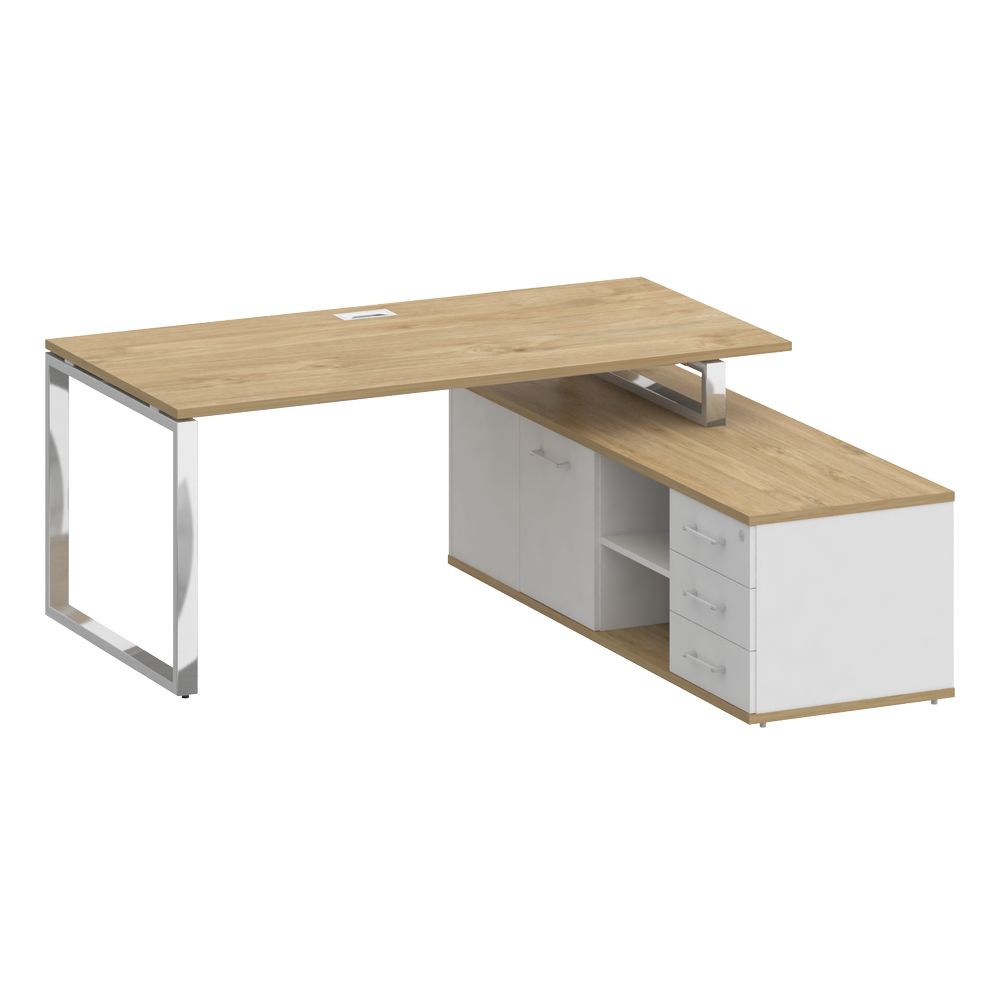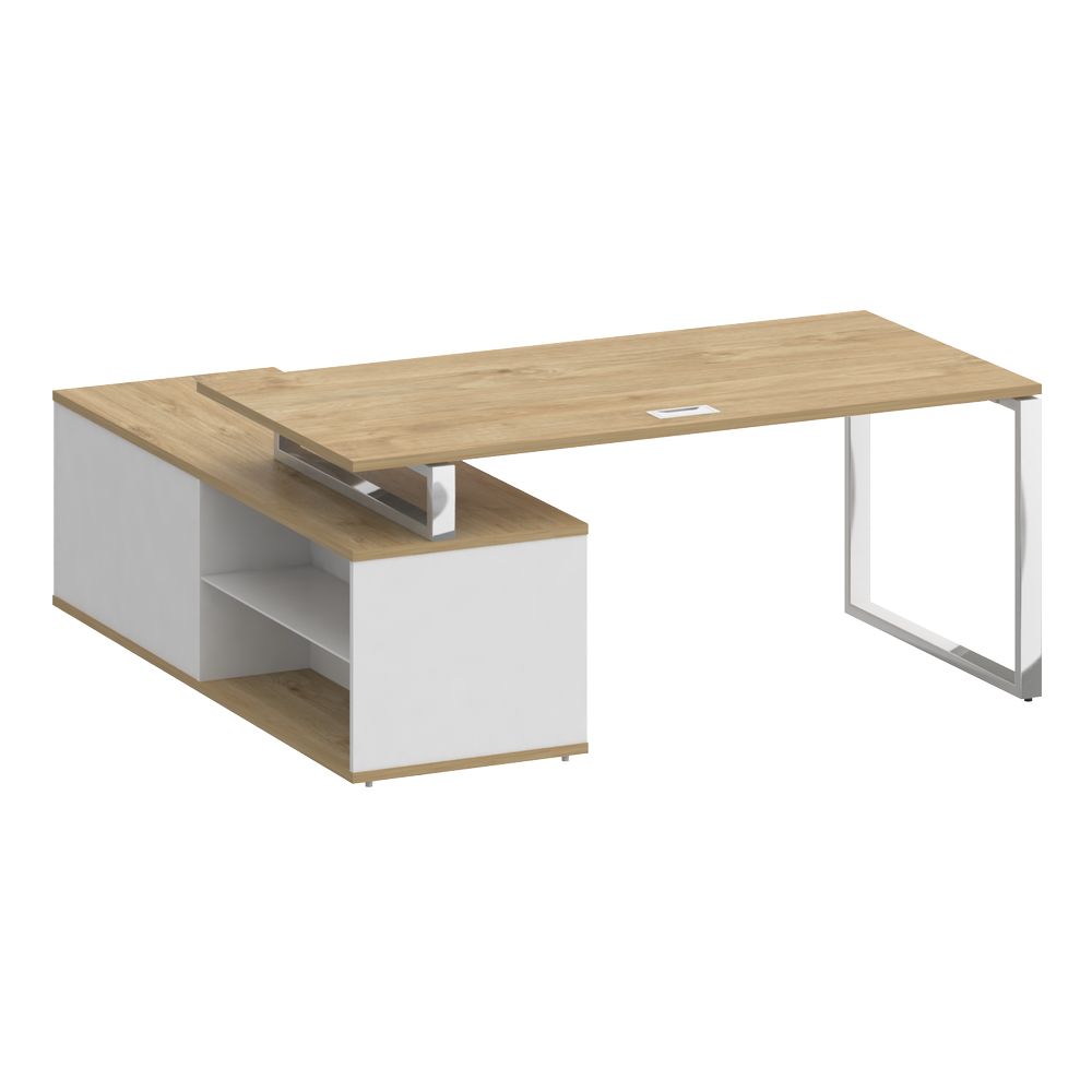 Стол руководителя с опорной греденцией, правый Рива SHIFT SK.SRG-180 R Тиквуд Светлый/Белый Бриллиант