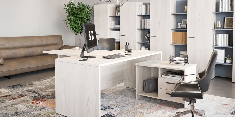 Кабинет LEMO является отражением стиля, динамики и хорошего вкуса его владельца. Лаконичные формы, ясность и четкость линий всех элементов, благородные оттенки древесных текстур придают офису деловой и элегантный облик.LEMO- это качественный, привлекательный идоступный гарнитур, который станет украшением Вашего офиса. Все модели имеют высокое качество используемых материалов ипродуманность дизайна. Модели обладают широкими возможностями для комбинирования, что позволяет создавать различные варианты гарнитура. В случае необходимости расширения рабочей зоны можно использовать весь спектр аксессуаров.Классические цвета идеально подойдут для формирования теплой и уютной обстановки кабинета и органично впишутся в любое помещение. Характеристики серии Столешницы, опоры - ЛДСП 25 мм, противоударная кромка ПВХ 2 мм и 0,4 мм. Опоры столов регулируются. Соединительный щит - ЛДСП 18 мм, кромка ПВХ 0,4 мм. Каркас столов - ЛДСП 18мм, кромка 0,4 мм. Шкафы изготовлены полностью из ЛДСП 18 мм, кромка 0,4 мм. Жесткие горизонтали. Задняя стенка - ХДФ, цвет - белый. Двери - ЛДСП. Тумбы изготовлены полностью из ЛДСП 18 мм. Усиленные роликовые направляющие длиной450 мм. Собираются на левую и правую стороны. В древесных цветах облицованы кромкой 0,4 мм, в фоновых цветах облицованы кромкой 0,8 мм. Крышки тумб - ЛДСП 25 мм. Каркас, двери, задняя стенка ЛДСП 18 мм. Собираются на левую и правую стороны. Экраны и надставка изготовлены полностью из ЛДСП 18 мм. В древесных цветах облицованы кромкой 0,4 мм, в однотонных цветах облицованы кромкой 0,8 мм.Условия покупки