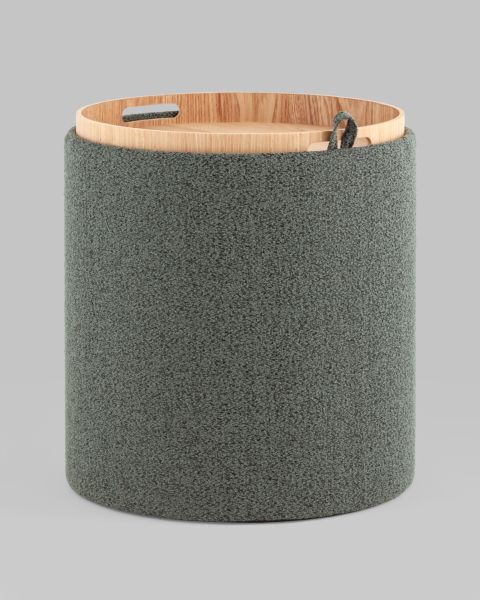 Мягкий пуф с ящиком станет незаменимым украшением интерьера. Он не только удобный, но и функциональный. Благодаря двухсторонней крышке, пуф можно трансформировать в журнальный столик. Столешница выполнена из светлого дерева с бортиками по краям и вырезными ручками для удобства, и безопасности при использовании. Крышка пуфика полностью съемная и при необходимости её можно использовать как поднос. Полезное дополнение - ящик для хранения различных мелочей, внутри обит тканью. Компактный и вместительный, такой пуфик наполнит пространство особым уютом и теплом. Подойдет для любого интерьера - как в классическом стиле, так и в современном. Мягкая обивка выполнена из стильной ткани букле. Прочный каркас из фанеры не утяжеляет изделие и выдерживает нагрузку до 150 кг. Небольшие подпятники в основании пуфа защищают напольные покрытия от царапин и предотвращают скольжение. Высота пуфа 44 см. Диаметр 39 см.Условия покупки