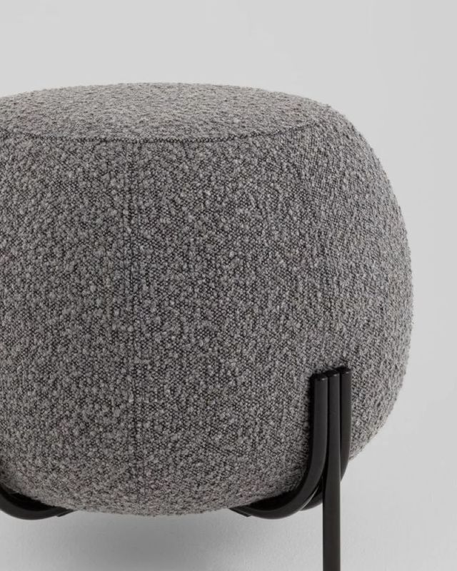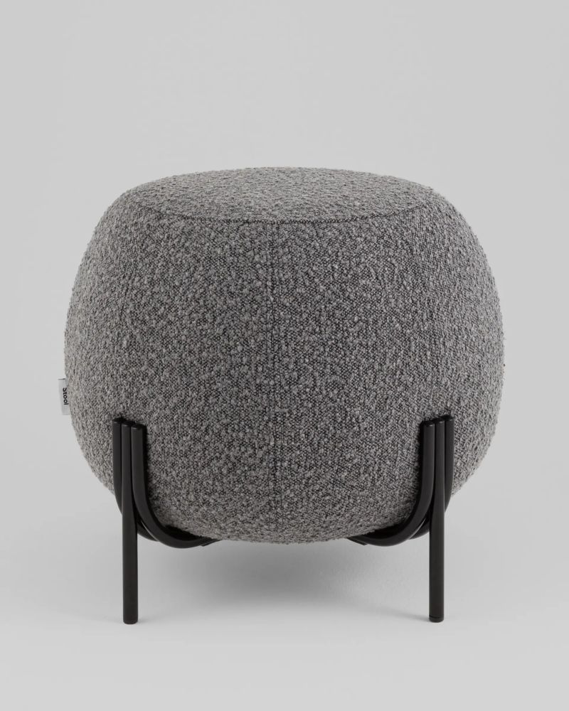 Пуф Флик New уютный акцент для современного интерьера. Материалы и цвета.Пуф обтянут мягкой и приятной на ощупь тканью букле тёмно-серого цвета, которая придает изделию уют и современную элегантность. Черный металлический каркас обеспечивает устойчивость и дополняет стильный дизайн. Дизайн.Круглая форма пуфа создает комфортное место для сидения или отдыха. Металлические ножки с изящной формой подчеркивают оригинальность модели и добавляют легкости конструкции. Функциональность.Пуф выдерживает нагрузку до 80 кг, что делает его удобным и надежным аксессуаром для дома. Место использования.Этот пуф станет идеальным дополнением для гостиной, спальни или лаунж-зоны, добавляя стиль и практичность в интерьер.Условия покупки