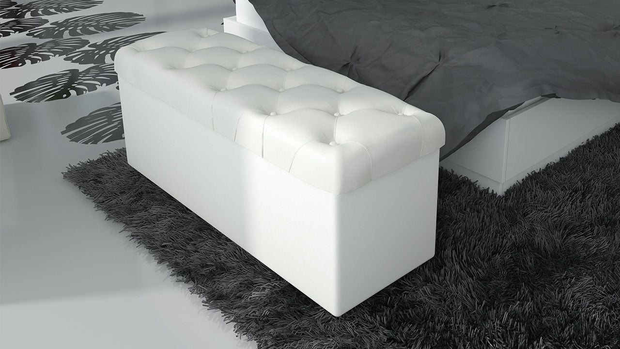 Такой пуфик станет отличным дополнением для мебельного гарнитура, использованного в оформлении спальни, и найдет своe; место у трюмо или туалетного столика. Этот функциональный аксессуар, выполненный из экокожи, будет прекрасно сочетаться с остальными предметами мебели и привнесe;т в интерьер комфортабельность и уют. Главная особенность этой модели - ящик, расположенный под сиденьем.