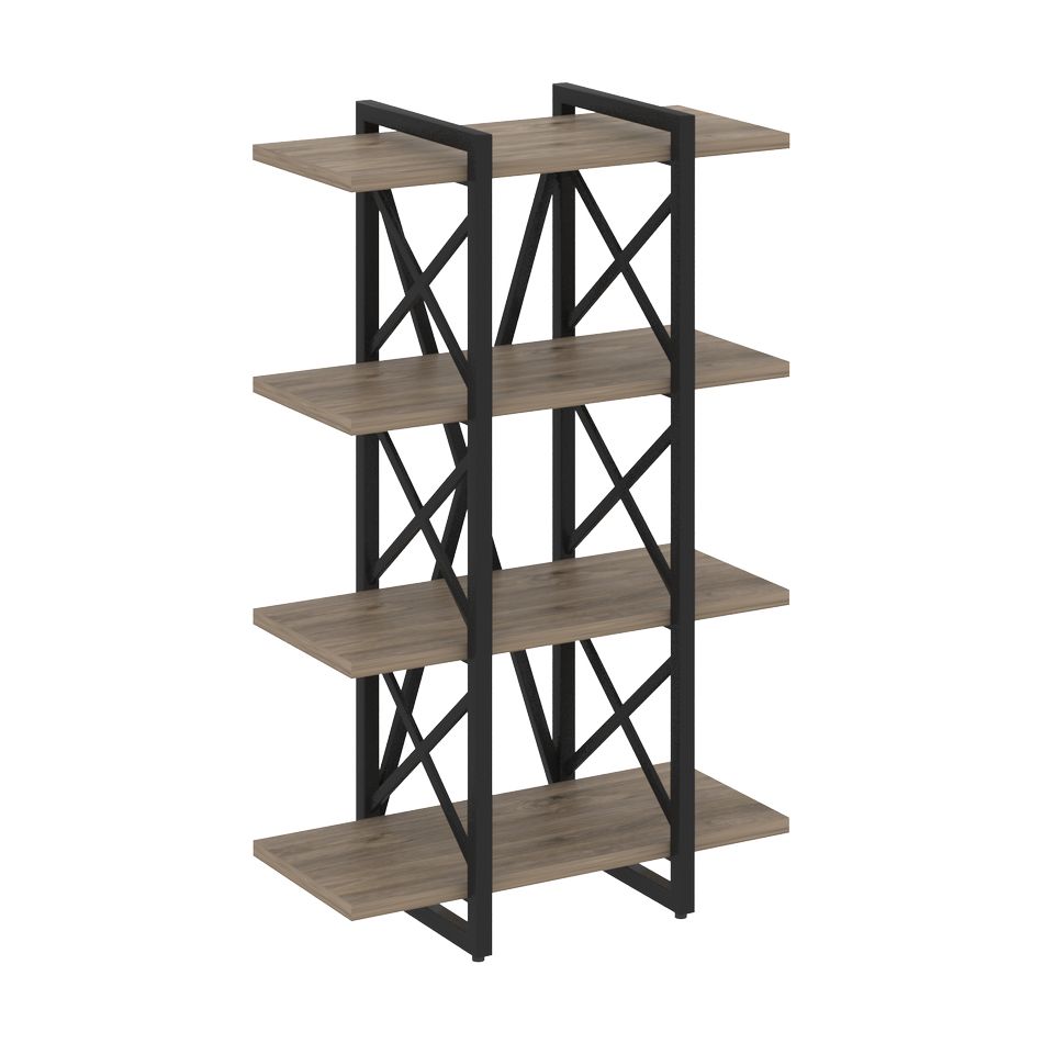 Стеллаж на регулируемых опорах - 4 полки Рива LOFT VR.L-MST.O-4.4V Металл черный Тиквуд темный