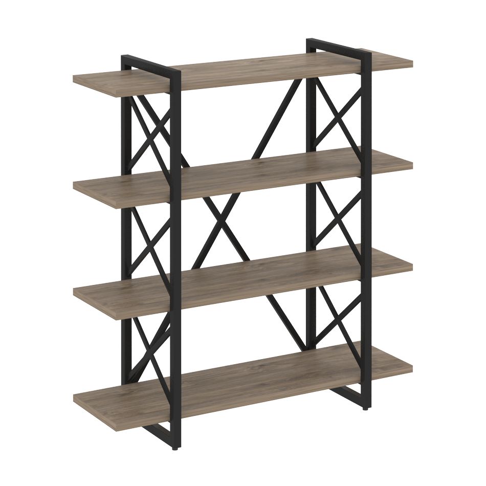 Стеллаж на регулируемых опорах - 4 полки Рива LOFT VR.L-MST.O-4.8V Металл черный Тиквуд темный
