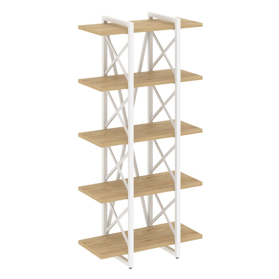 Стеллаж на регулируемых опорах - 5 полок Рива LOFT VR.L-MST.O-5.4V Металл белый Тиквуд светлый