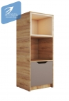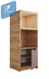 Стеллаж СЖ-002 имеет распашную створку из ЛДСП 16 мм. В створке произведена фрезеровка, заменяющая ручку. Длина фрезеровки 280 мм. Фасад внутренний. За створкой стеллажа ниша, разделенная полкой на две равные части по 187 мм высотой. Верхняя часть СЖ-002 разделена на 2 ниши, одинаковые по габаритам (Д. 476 х В.389 х Г.458) В одну нишу устанавливают короб из ЛДСП 16 мм (Д.474 х В.387 х Г.458) в цветовой гамме фасадов. Короб имеет заднюю стенку ЛДСП 16 мм и крепится к корпусу при помощи стяжки межсекционной D5*32 мм к вязкам. В другой нише задняя стенка ЛДСП 16 мм цвета корпуса. Корпус стеллажа ЛДСП 16мм в кромке 2,0 по видимой стороне в цвет корпуса, кромка скрытых частей изделия 0,4 мм, задние стенки ЛХДФ 3,2 мм.