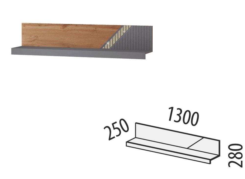Полка Монако 605.26 является частью модульной серии Монако 605. Коллекция Монако - это образец элегантного стиля и утонченного вкуса. Сочетание матовой графитовой поверхности фасадов с благородной древесной текстурой создает особую атмосферу гармонии и комфорта. Полку можно использовать как отдельный предмет мебели в ТВ-зоне гостиной, спальни или детской, так и в сочетании с другими модулями коллекции. Внешние и конструктивные особенности модели Полка выполнена из ЛДСП толщиной 16 мм и МДФ толщиной 6 и 16 мм. Торцы изделия окромлены противоударным кантом ПВХ толщиной 0,4 мм. Полка декорирована вставкой со стильной фрезеровкой и объемным 3D-рисунком, дополненным россыпью глиттера. Мерцающий декор подчеркивает эксклюзивный и уникальный вид изделия, не стирается со временем. Надежность и безопасность в эксплуатации Полка произведена из МДФ и ЛДСП повышенной плотности. Материал устойчив к механическим и термическим воздействиям. ЛДСП выдерживает min 300 циклов на истирание, что почти в 5 раз больше, чем требуется по ГОСТу min 65. Класс эмиссии плиты Е1, что говорит об экологической безопасности. Данный материал безопасен для здоровья и рекомендован к производству мебели для кухни, спальни и детских комнат. Противоударный кант ПВХ продлевает срок службы мебели. Понятная инструкция и необходимая фурнитура для сборки поставляются в комплекте. Крепление к стене обеспечивает безопасную эксплуатацию изделия крепежная фурнитура в комплекте. Гарантия 8 лет. Это больше, чем по ГОСТу, и в 4 раза больше, чем у многих производителей. Надежная упаковка защищает изделие от повреждений при транспортировке на большие расстояния. Выдерживает многократные погрузки и разгрузки.Условия покупки