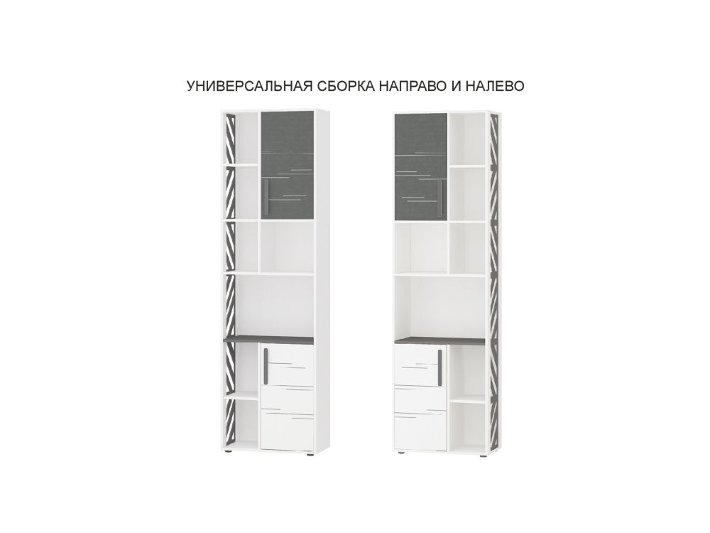 - Модуль является универсальным и может быть собран как с левым, так и с правым открыванием дверей. Резную боковину Вы также можете установить с любой стороны стеллажа.