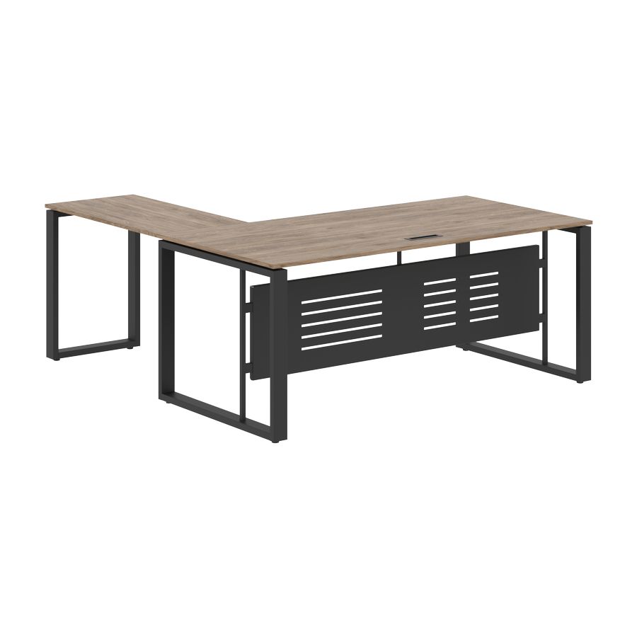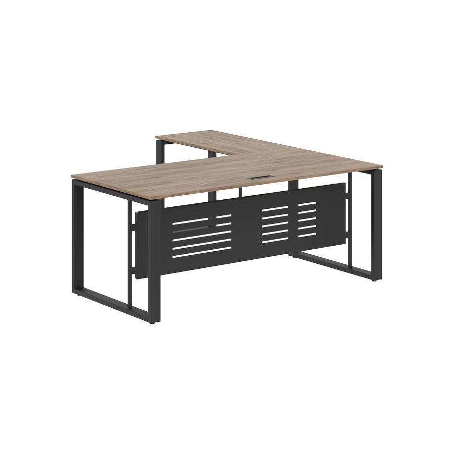 Кабинет ENIO это дизайн, вдохновленный итальянскими трендами и адаптированный под российские стандарты. Он воплощает в себе современные идеи открытости и легкости, но при этом учитывает потребности и предпочтения российских руководителей. Серию отличает выразительный контраст деталей массивность металлических опор дополнена парящими деревянными столешницами и фронтальными панелями. А строгость и лаконичность крупных деталей антрацитового цвета разбавлена богатством древесного декора. Именно эта тонкая игра нюансов делает кабинет ENIO таким особенным. Опоры столов O-образной формы с сечением трубы 70х30 мм популярное решение в современной офисной мебели. В ENIO опоры дополнены тонкими линиями ассиметрично расположенных траверс, что делает дизайн этого кабинета привлекательным для широкой публики, но при этом абсолютно незаурядным. Характеристики столешница из ЛДСП т. 18 мм с кромкой ПВХ по периметру т. 2 мм комплектуется заглушкой к/к черного цвета 180х51 мм металлокаркас опоры О-образной формы из профиля трубы 70х30х1,5 мм, цвет Антрацит, с регулировкой по высоте столешница комплектуется двумя металлическими крашеными траверсами из профиля трубы 40х25х2 мм стол комплектуется короткой фронтальной панельюиз металлического листа толщиной 1,5 мм с перфорацией, h400 мм. Крепление фронтальной панели при помощи кронштейнов к опоре стола приставка универсальная, устанавливается слева или справа.Условия покупки