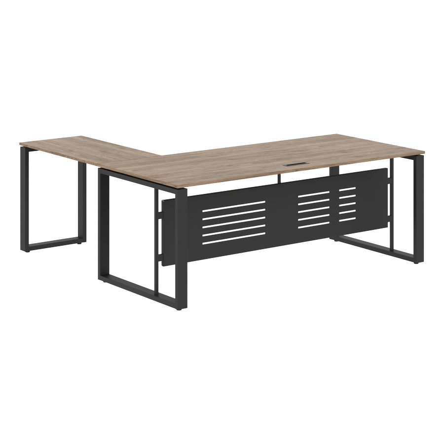 Кабинет ENIO это дизайн, вдохновленный итальянскими трендами и адаптированный под российские стандарты. Он воплощает в себе современные идеи открытости и легкости, но при этом учитывает потребности и предпочтения российских руководителей. Серию отличает выразительный контраст деталей массивность металлических опор дополнена парящими деревянными столешницами и фронтальными панелями. А строгость и лаконичность крупных деталей антрацитового цвета разбавлена богатством древесного декора. Именно эта тонкая игра нюансов делает кабинет ENIO таким особенным. Опоры столов O-образной формы с сечением трубы 70х30 мм популярное решение в современной офисной мебели. В ENIO опоры дополнены тонкими линиями ассиметрично расположенных траверс, что делает дизайн этого кабинета привлекательным для широкой публики, но при этом абсолютно незаурядным. Характеристики столешница из ЛДСП т. 18 мм с кромкой ПВХ по периметру т. 2 мм комплектуется заглушкой к/к черного цвета 180х51 мм металлокаркас опоры О-образной формы из профиля трубы 70х30х1,5 мм, цвет Антрацит, с регулировкой по высоте столешница комплектуется двумя металлическими крашеными траверсами из профиля трубы 40х25х2 мм стол комплектуется короткой фронтальной панельюиз металлического листа толщиной 1,5 мм с перфорацией, h400 мм. Крепление фронтальной панели при помощи кронштейнов к опоре стола приставка универсальная, устанавливается слева или справа.Условия покупки