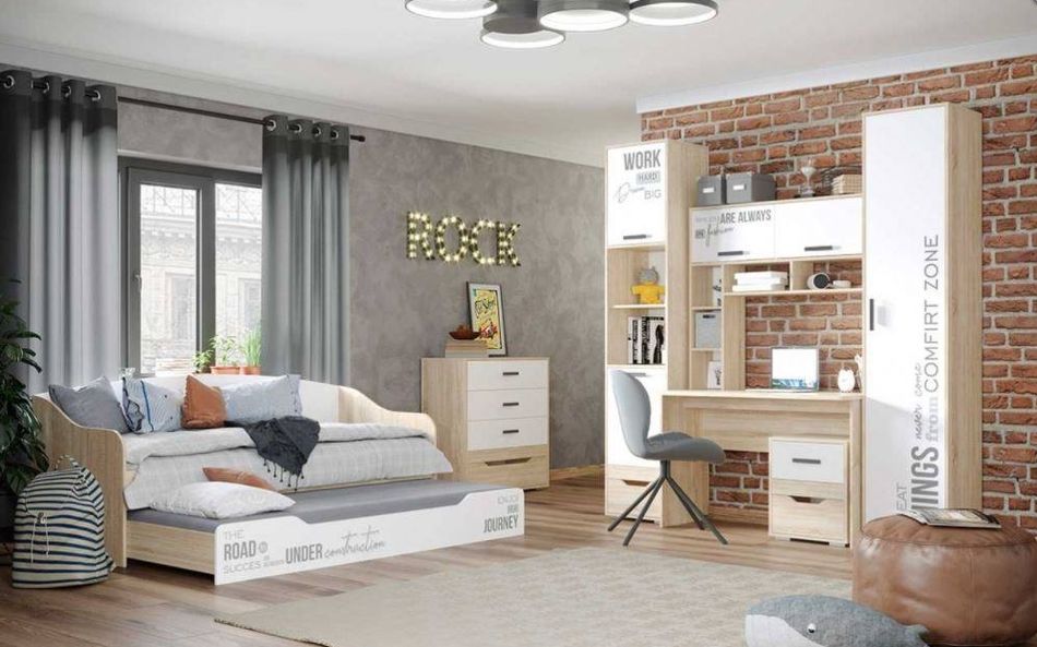 Подобная мебель не сужает пространство за счет лаконичности дизайна и четкого изгиба линий. Это отличное решение для обеспечения комфортных условий для учебы и отдыха.