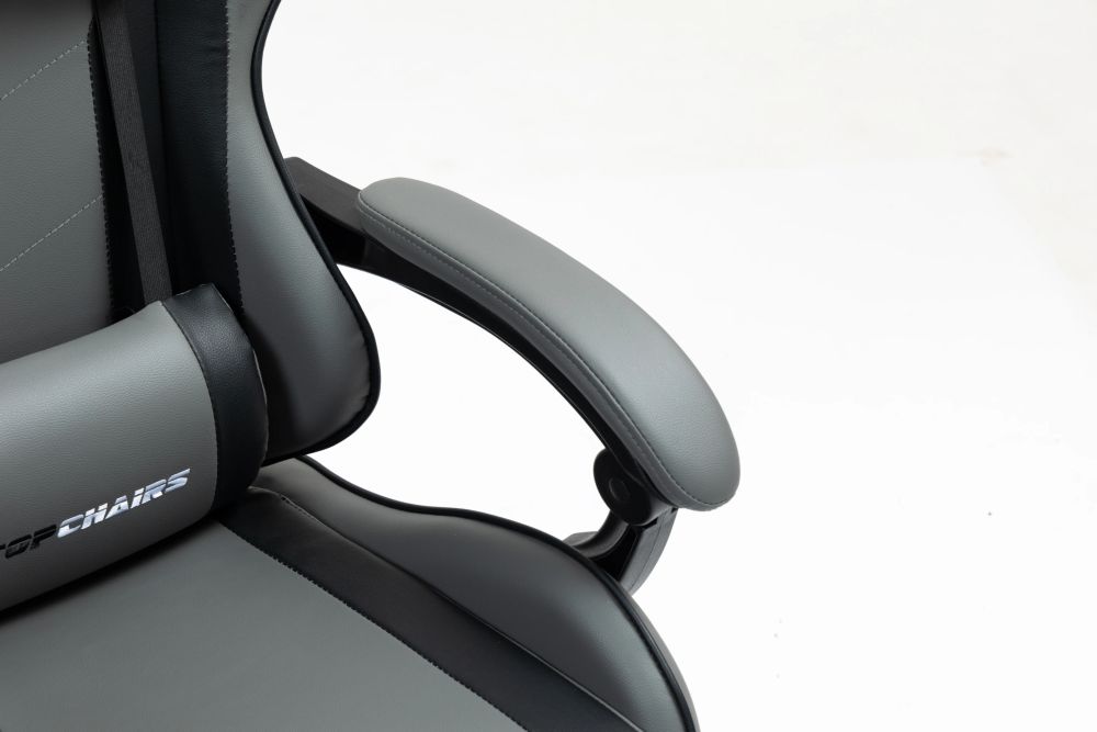 Кресло спортивное TopChairs Commander серо-черное комфорт и стиль для вашего пространства. Кресло TopChairs Commander сочетает спортивный дизайн и высокую функциональность, идеально подходя для долгих игровых и рабочих сессий. Эргономичные элементы и качественные материалы обеспечивают удобство и поддержку. Материал и поддержка.Обивка из мягкой и прочной экокожи приятна на ощупь, долговечна и проста в уходе. Две ортопедические подушки поддерживают шею и поясницу, помогая сохранять осанку и снижая нагрузку на спину. Подлокотники и регулируемые механизмы.Подлокотники дают опору для рук, снижая напряжение в плечах. Кресло регулируется по высоте и углу наклона спинки до 135, что позволяет настроить оптимальное положение. Газлифт 3 класса выдерживает до 120 кг, гарантируя надёжность. Устойчивость и плавность перемещения.Прочное пластиковое основание и колесики из ПУ нейлона обеспечивают устойчивость и плавное передвижение без повреждения пола. Современный стиль и эргономика.Серо-черное кресло TopChairs Commander не только функционально, но и добавляет стильный акцент, делая его идеальным для рабочего или игрового пространства.Условия покупки