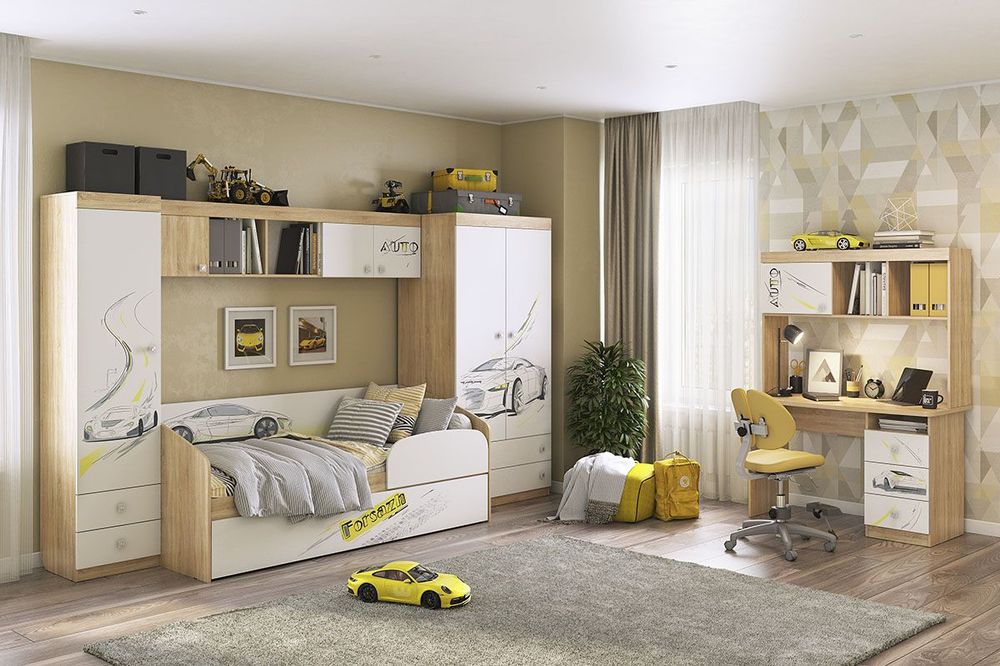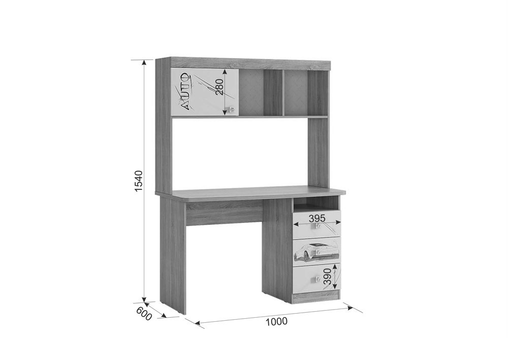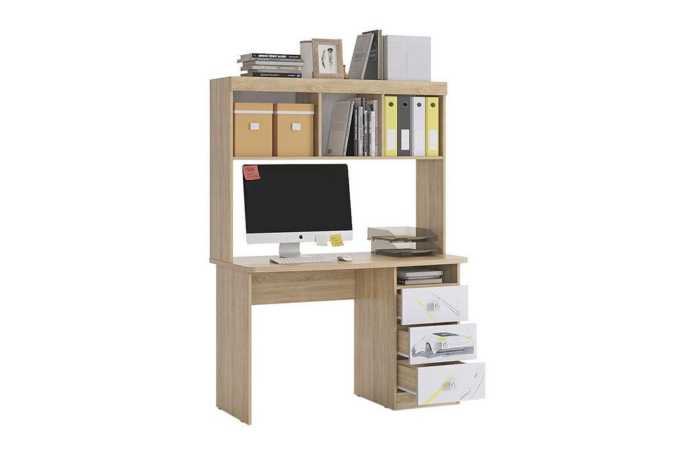 Стильный стол «Форсаж» – мечта каждого мальчика. Компактный стол прекрасно впишется даже в маленькое пространство детской комнаты. Удобная столешница подойдет как для письма, так и для занятий на компьютере или ноутбуке. Открытые полки и закрытые ниши надстройки стола хорошо подходят для хранения учебников и школьных принадлежностей. В 3-х выдвижных ящиков поместится все, что необходимо для учебы и творчества. Эффектный принтерный рисунок на фасадах выдержан в общем стилистическом решении. Рисунок устойчив к истиранию и ультрафиолету.