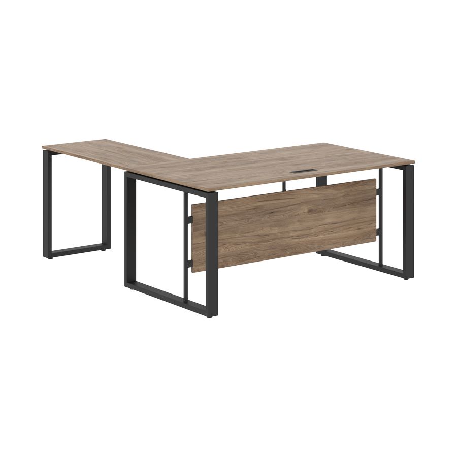 Кабинет ENIO это дизайн, вдохновленный итальянскими трендами и адаптированный под российские стандарты. Он воплощает в себе современные идеи открытости и легкости, но при этом учитывает потребности и предпочтения российских руководителей. Серию отличает выразительный контраст деталей массивность металлических опор дополнена парящими деревянными столешницами и фронтальными панелями. А строгость и лаконичность крупных деталей антрацитового цвета разбавлена богатством древесного декора. Именно эта тонкая игра нюансов делает кабинет ENIO таким особенным. Опоры столов O-образной формы с сечением трубы 70х30 мм популярное решение в современной офисной мебели. В ENIO опоры дополнены тонкими линиями ассиметрично расположенных траверс, что делает дизайн этого кабинета привлекательным для широкой публики, но при этом абсолютно незаурядным. Характеристики столешница из ЛДСП т. 18 мм с кромкой ПВХ по периметру т. 2 мм комплектуется заглушкой к/к черного цвета 180х51 мм металлокаркас опоры О-образной формы из профиля трубы 70х30х1,5 мм, цвет Антрацит, с регулировкой по высоте столешница комплектуется двумя металлическими крашеными траверсами из профиля трубы 40х25х2 мм стол комплектуется короткой фронтальной панелью из ЛДСП т. 18 мм, h400 мм с кромкой ПВХ т. 0,45 мм приставка универсальная, устанавливается слева или справа.Условия покупки