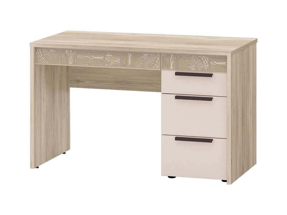 Просторная поверхность стола позволяет удобно разместить как компьютерное оборудование, так и канцелярские принадлежности. В тумбе установлено три выдвижных ящика. Для хранения мелочей под столешницей предусмотрен четвертый ящик. Фасады ящиков, расположенных под столешницей, декорированы вставкой, точно передающей фактуру натурального дерева: как на ощупь, так и визуально. Шариковые направляющие полного выдвижения обеспечивают длительный срок эксплуатации изделия.
