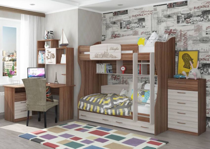 Подобная мебель не сужает пространство за счет лаконичности дизайна и четкого изгиба линий. Это отличное решение для обеспечения комфортных условий для учебы и отдыха.