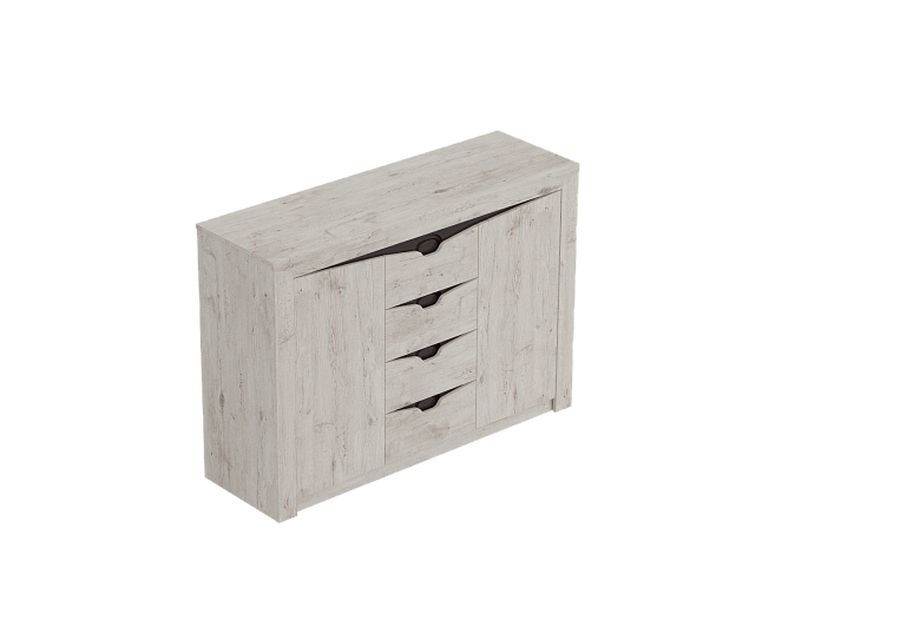 Комод Соренто докажет свою необходимость в любой комнате, где нужна дополнительная система хранения: в спальне его можно использовать для постельного белья, в гостиной – для посуды и столового текстиля. Центральную часть модуля занимают 4 ящика на шариковых направляющих, по обе стороны от них расположены закрытые секции. В каждом отделении предусмотрено по одной полке. Дизайн продиктован модным трендом – ручки на фасадах отсутствуют: ящики выдвигаются за декоративную выемку, дверцы оснащены автоматической системой отталкивания. Серия мебели для спальни «Соренто» от мебельной фабрики «Мебельград» отвечает всем к мебели для дома и отличается ценовой экономичностью и широкой линейкой моделей. Модельный ряд серии «Соренто» позволяет организовать пространство с максимальным комфортом и практичностью. Дизайн строится на простоте линий, а модульные элементы позволяют создать композицию любой конфигурации и под разные размеры помещения.Модульная система «Соренто» - идеальное решение для тех, кто предпочитает современный минимализм в сочетании с классическими четкостью линий и качеством. Все элементы данной серии могут быть заказаны как вместе, так и по отдельности и комплектоваться при этом по вашему желанию. Коллекция дает огромный выбор по расположению и установке ее элементов в соответствии с индивидуальными вкусом и потребностями заказчика.