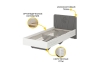 - Изголовье данной кровати обшито тканью с лицевой и обратной стороны спинки, что делает её эксплуатацию ещё более комфортной и безопасной.