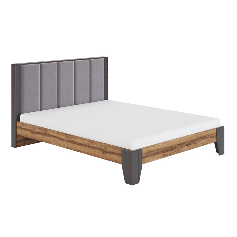 Кровать с мягкой спинкой 1400 мм без ортопедического основания Моника МАГ-РИВЕР Авелано/Графит антистрейч супермат